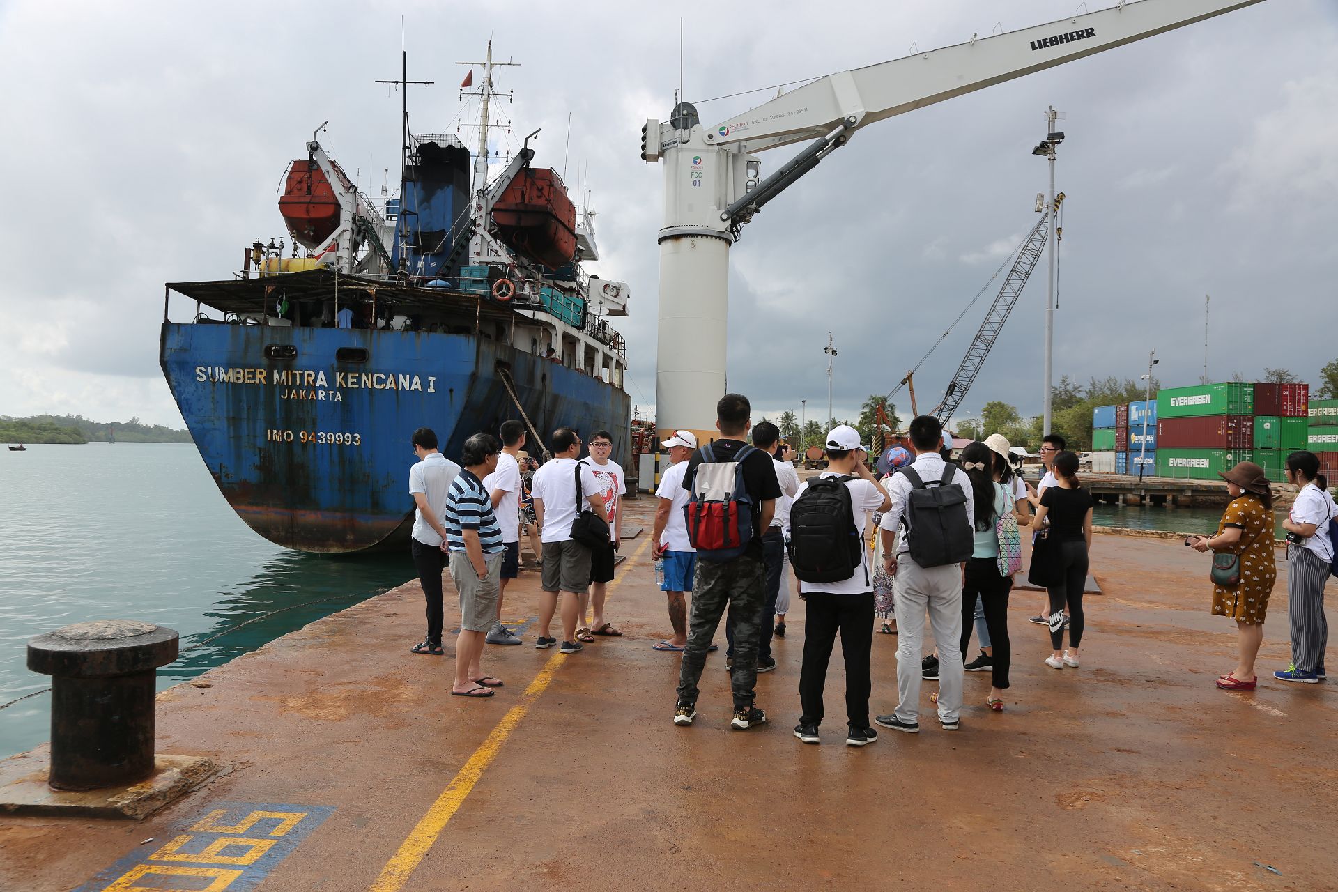 2026世界杯官网师生来到Kejiang港国际集装箱码头。Kejiang港毗邻马六甲海峡,享有优越的地理位置和天然深水良港的自然优势。随着“一带一路”倡议下基础建设的完善,Kejiang港在国际货物转运及本地制成品出口等方面都发挥着越来越重要的作用,为促进当地的进出口贸易发展与缓解就业压力做出了贡献。