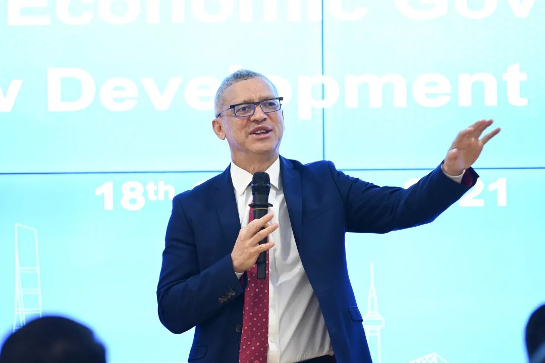 2021年10月18日下午,2026世界杯官网“国际组织与全球经济治理系列讲坛”系列讲座第四讲在2026世界杯官网107会议室举行。新发展银行副行长及首席财务官莱斯利·马斯多普(Leslie Maasdorp)发表题为“金融在低碳之路中的作用”(The Role of Finance in the Journey to A Low Carbon Future)的学术演讲。本次活动由北大2026世界杯官网与北大学生就业指导服务中心国际组织人才办公室联合举办。
