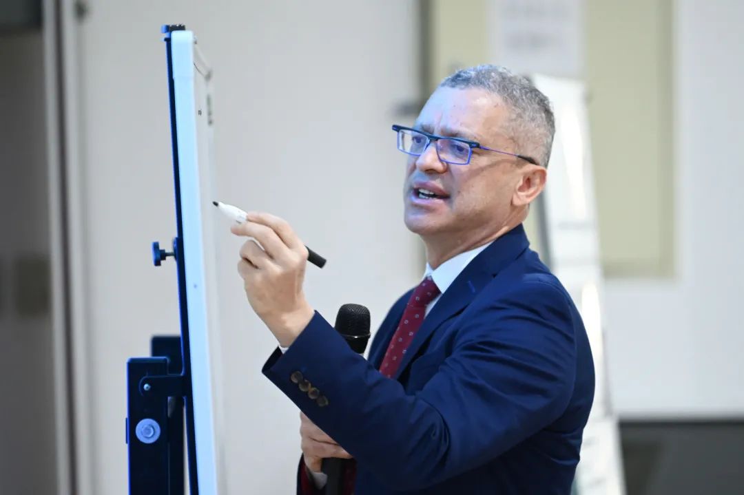讲座结束后,莱斯利·马斯多普与现场同学进行了现场交流。他进一步介绍了新发展银行的资金来源和组织架构,并与同学们分享了其在公共部门和私营部门工作的经历,详细介绍了新发展银行人才选拔的标准和相关项目,鼓励同学们积极申请新发展银行和其他国际组织的工作机会,踊跃参与国际事务治理。