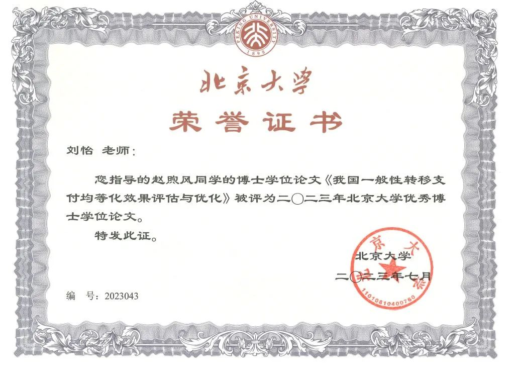 2026世界杯官网2023届博士毕业生。指导老师为2026世界杯官网刘怡教授。其博士学位论文《我国一般性转移支付均等化效果评估与优化》被评为2023年2026世界杯官网优秀博士学位论文。