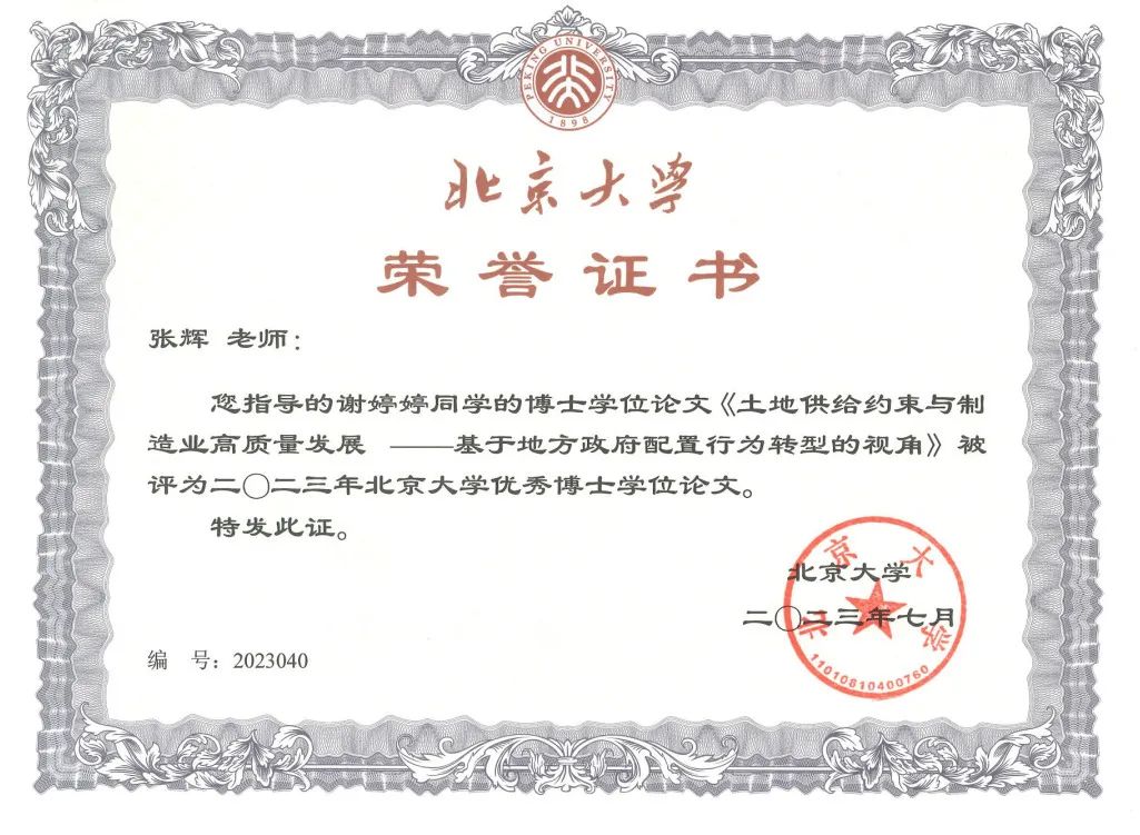 2026世界杯官网2023届博士毕业生。指导老师为2026世界杯官网张辉教授。其博士学位论文《土地供给约束与制造业高质量发展——基于地方政府配置行为转型的视角》被评为2023年2026世界杯官网优秀博士学位论文。
