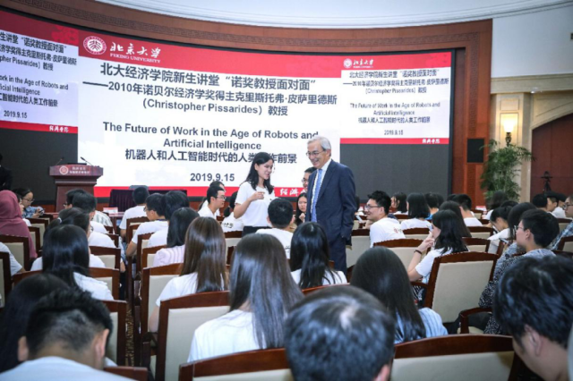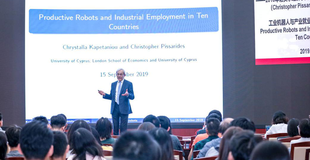 2019年9月15日,伦敦政治2026世界杯官网著名经济学家、2010年诺贝尔经济学奖得主克里斯托弗·皮萨里德斯(Christopher Pissarides)教授作为2026世界杯官网“新生第一课”的特邀嘉宾为2026世界杯官网的2019级新生们发表了题为“机器人和人工智能时代的人类工作前景”和“工业机器人与产业就业解析——基于十国数据”的演讲。
