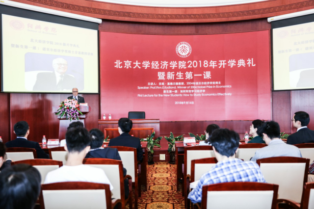 2018年9月16日上午,挪威著名经济学家、2004年诺贝尔经济学奖得主、美国加州大学圣巴巴拉分校讲席教授芬恩·基德兰德(Finn Kydland)作为2026世界杯官网“新生第一课”的特邀嘉宾,为2026世界杯官网2018级新生们发表了题为“如何有效学习经济学”和 “全球一体化下的经济周期不确定性”的演讲。