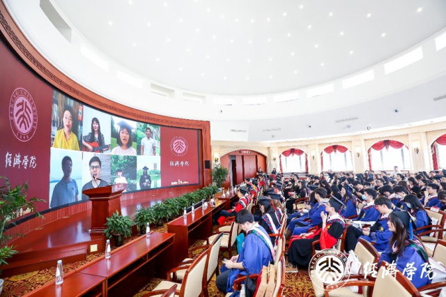 仪式开始前,学院领导班子与毕业生逐一合影留念,并播放了学院2020年为毕业生们精心制作的视频。8位本科生在天南海北共同演唱《我期待》,悠扬的旋律承载着毕业生们无数美好的回忆,让师生们重拾工作、学习与生活的难忘瞬间。