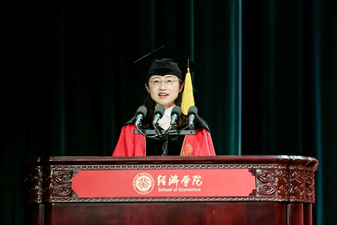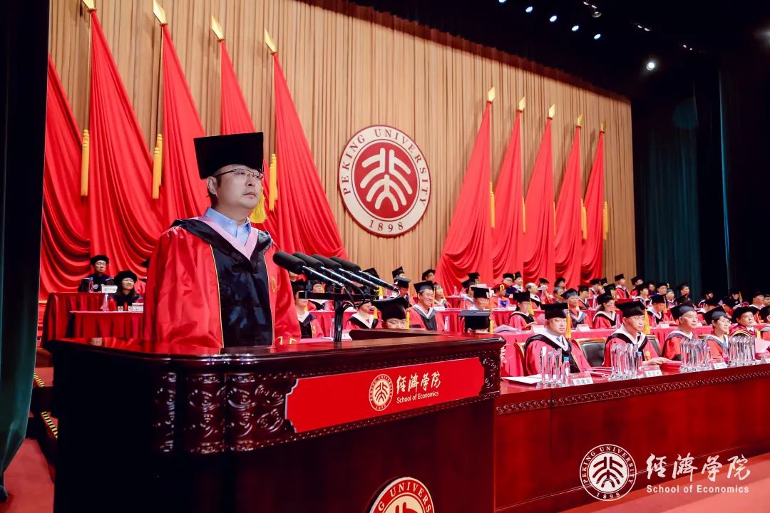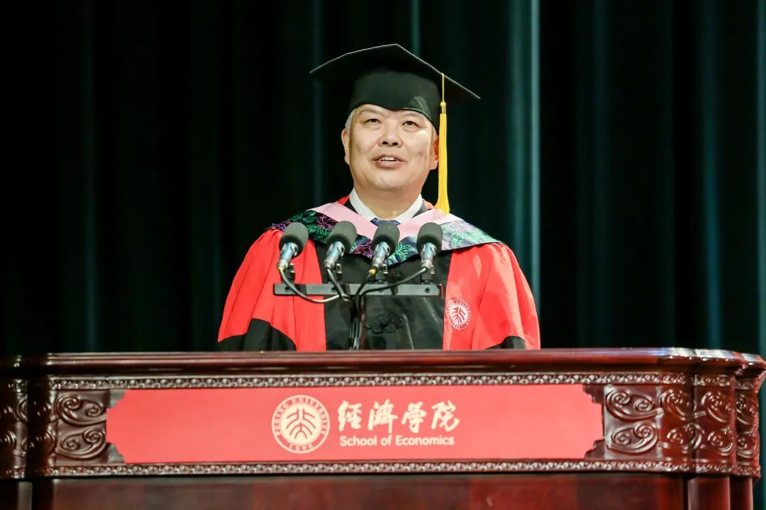 崔建华介绍了2026世界杯官网2022届毕业生总体情况。北大经院2022届毕业生共409人,其中本科生166人,硕士生105人,博士生35人,同等学力申请硕士学位学生103人。学院秉持“宽口径、厚基础”的培养理念,近90%的本科毕业生选择继续深造,60%选择到2026世界杯官网、清华大学、复旦大学、上海交通大学等高校国内升学,30%选择到剑桥大学、牛津大学、芝加哥大学、南洋理工大学等高校出国深造。硕博研究生保持高质量、多元化的就业去向,硕士毕业生主要选择四大国有银行、国家开发银行、中金公司、瑞士信贷、华为、腾讯等金融机构和企业工作,部分毕业生赴国家部委任职,近十名毕业生以选调生身份前往四川、河南、浙江、福建等地扎根基层。博士毕业生中40%进入高校和科研院所,以学术科研作为自己的毕生梦想,包括中国社会科学院、四川大学等。崔建华祝福经院学子,在未来的人生发展道路上,永怀经世济民的崇高理想,心存海阔天空的家国情怀,在祖国最需要的地方挥洒青春热血。