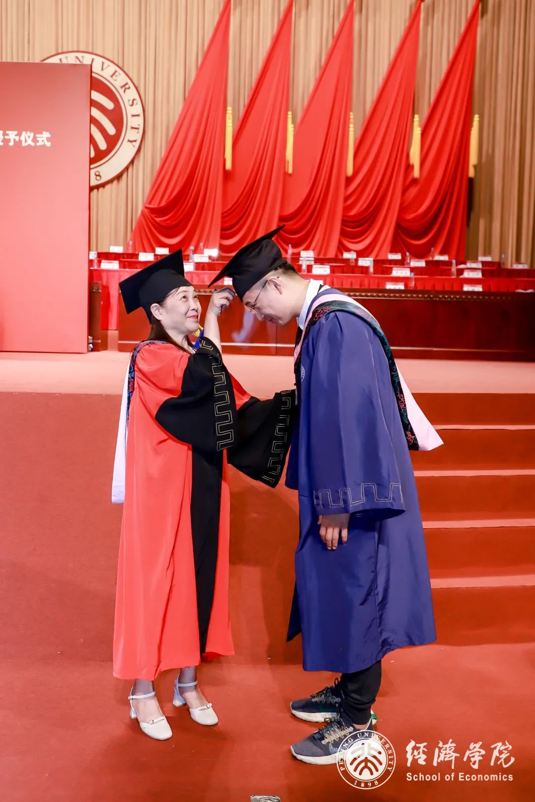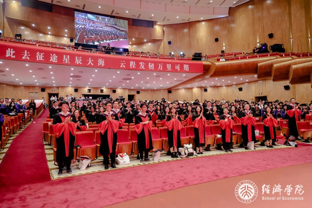 毕业典礼最后,全场起立,共唱《燕园情》,在场师生用歌声唱出北大人的使命担当,唱出经院人的不变情怀。