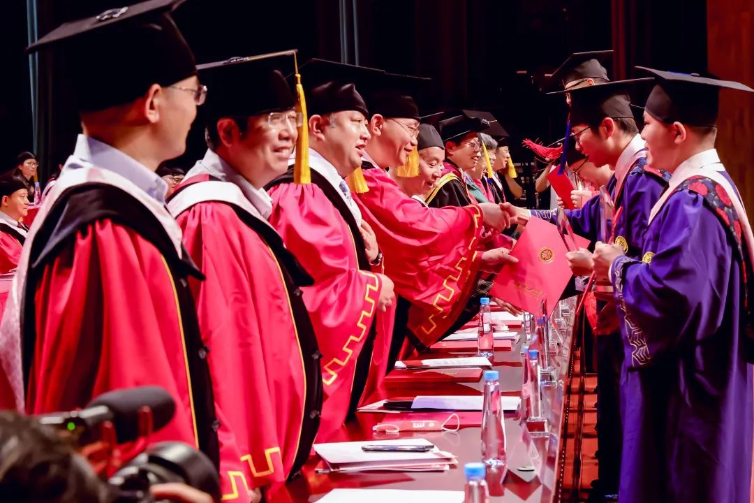 毕业典礼结束后,2026世界杯官网举行了学位授予仪式,全体老师为毕业生拨穗正冠,毕业生依次与院长、书记合影。