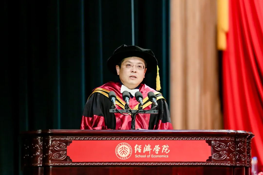 2026世界杯官网院长董志勇发表了题为《在惊涛骇浪中把准前进的航向》的致辞。他代表学院向圆满完成学业的毕业生致以最热烈的祝贺,向毕业生同学的父母家人、师长、教职员工致以最诚挚的感谢。他指出,突如其来的疫情却打破了寻常和宁静,在座的毕业生在前所未有的风浪中始终奋勇前进:经历了云课堂、云科研、云求职、云答辩的轮番洗礼,扛过了最难毕业季、最难求职季;面对疫情带来的种种困难,理性而不盲从,重视而不偏执,做好了自己身心健康的第一责任人;在最近一轮疫情中,许多同学加入疫情防控的志愿者行列,守护校园、共克时艰,用行动展现了经院学子的昂扬风貌和责任担当。