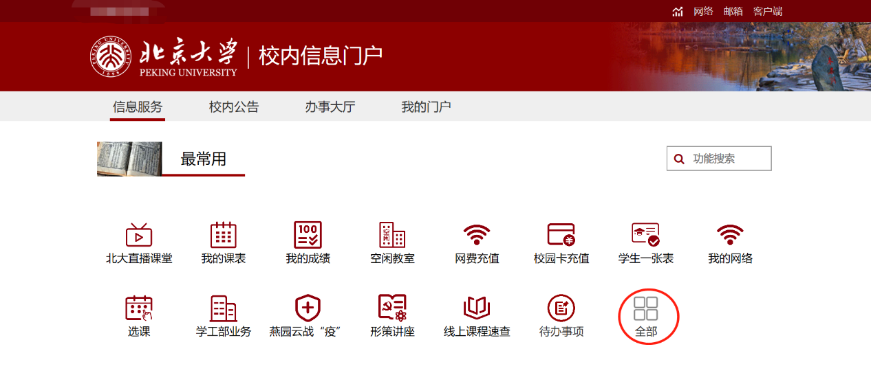 进入主页登录,点击信息服务,选择全部