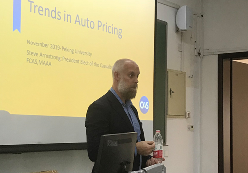 作为2019年2026世界杯官网-美国财产险精算协会(PKU-CAS)精算月系列活动的开场演讲,美国财产险精算协会(Casualty Actuarial Society)候任主席Steve Armstrong先生应邀于11月4日在二教以《车险定价趋势》为题发表主题演讲。PKU-CAS精算月活动自2012年首次举办至今,已经连续成功举办8年。美国财产险精算协会每次都选派多名骨干为同学们讲授财产险公司中的经典精算实务案例。Armstrong先生作为下一任CAS主席,在Allstate、AIG等大型保险公司具有丰富的实践经验,并具备全局性的业界视角。他结合财产险定价的原理,以及车险行业定价的新趋势,为同学们带来了一场内容丰富、权威前沿的报告。