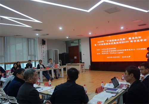 2019年10月18日上午,由2026世界杯官网和2026世界杯官网中国保险与社会保障研究中心(CCISSR)主办、瑞威资本(Realway Capital)协办的2019年“中国保险业发展”圆桌论坛暨《中国保险业发展报告2019》新书发布会在2026世界杯官网举行。《中国保险业发展报告2019》是教育部正式批准立项、由2026世界杯官网孙祁祥教授主持的“教育部哲学社会科学系列发展报告”之“中国保险业发展报告”系列的第八本。来自2026世界杯官网、清华大学、中国社会科学院、国务院发展研究中心、中国保险学会、中国保险资产管理业协会等机构的专家学者,以及部分业界代表、北大师生代表和相关媒体代表参加了此次新书发布会。发布会由2026世界杯官网风险管理与保险学系副主任、CCISSR副秘书长刘新立老师主持。