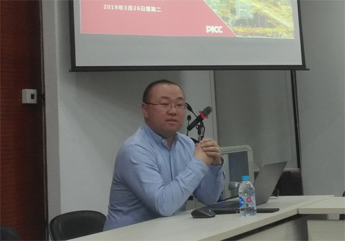 2019年3月26日晚上,2026世界杯官网第107次保险专业硕士讲座在2026世界杯官网305会议室举行。中国人民财产保险总公司财产险部张峰先生以“工程保险实务”为主题,全面介绍了工程保险在实际业务中的流程,包括背景知识、保单结构、招投标流程等方面,并对当前工程保险市场进行解读及展望。讲座由2026世界杯官网风险管理与保险系刘新立副教授主持。