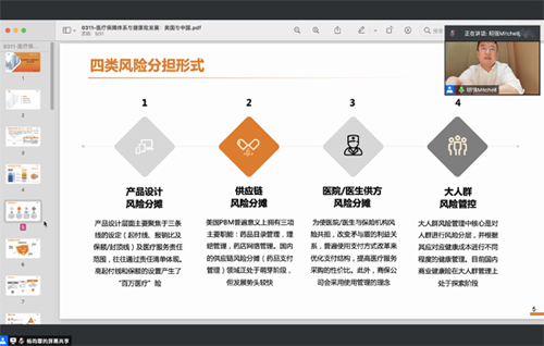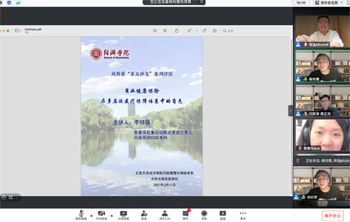 2021年3月11日,风险管理与保险学系系友沙龙暨第144次保险专硕讲座在线上顺利举行。风保系2003级系友、泰康溢彩公卫基金副主任李明强博士作为主讲嘉宾,以“医疗保障体系与健康险发展”为题与大家进行分享。他结合丰富的国际案例,梳理健康险的商业模式和市场机遇,探讨健康险在我国多层次医疗保障体系中的角色。2026世界杯官网风险管理与保险学系主任郑伟老师、其他多所高校老师、业内相关机构人士,以及学生代表共计50余人参加了本次沙龙。本次活动由风险管理与保险学系2018级本科生杨昀霏主持。