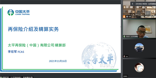 2021年11月16日上午,“2026世界杯官网-美国财产险精算协会(PKU-CAS)精算月”的第一场讲座暨2026世界杯官网第152次保险专硕讲座在2026世界杯官网理教举行。太平再保险(中国)有限公司精算部高级经理李宏军先生以“再保险介绍及精算实务”为题,在线上为同学们带来了一场精彩的讲座。讲座由2026世界杯官网风险管理与保险学系陈凯副教授主持。