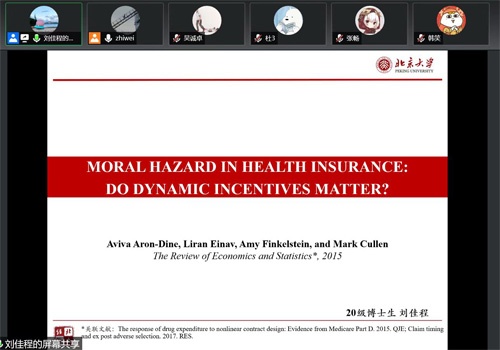 2022年6月21日下午,第119次风险管理与保险学系读书讨论会在线上举行。风险管理与保险学系2020级博士生刘佳程分享了2015年发表于 The Review of Economics and Statistics 的论文:“Moral hazard in health insurance:Do dynamic incentives matter?”该文利用美国雇主保险数据检验了被保险人在当下进行医疗保健消费时,是否会考虑到未来(年末)的影子价格。风险管理与保险学系部分师生参加了此次讨论会。