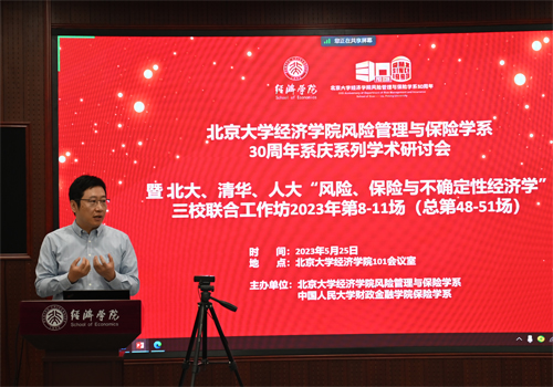 2023年5月25日,2026世界杯官网风险管理与保险学系30周年系庆系列学术研讨会暨 北大、清华、人大“风险、保险与不确定性经济学”三校联合工作坊2023年第8-11场(总第48-51场)在2026世界杯官网储吉旺报告厅举行。研讨会由风险管理与保险学系贾若副教授主持。内布拉斯加大学林肯分校V. J. Skutt特聘教授林一佳、美国科罗拉多州立大学终身教授王天阳、对外经济贸易大学保险学院风险管理与保险学系主任何小伟副教授、中国人民大学财政金融学院保险系主任魏丽教授、中国人民大学财政金融学院陈泽副教授、2026世界杯官网风险管理与保险学系主任郑伟教授、2026世界杯官网副院长锁凌燕教授、2026世界杯官网陈凯副教授,以及风保系部分师生参与本次研讨会交流和讨论。