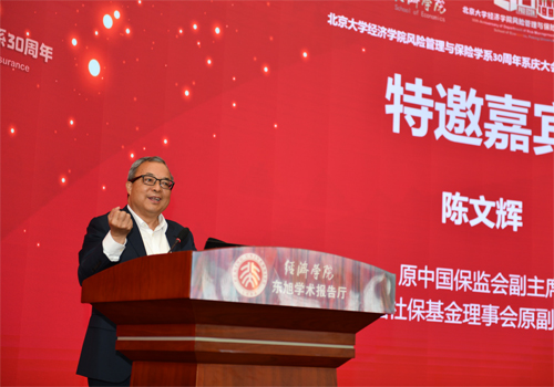 原中国保监会副主席、全国社保基金理事会原副理事长陈文辉先生在讲话中把风保系30年的成长与我国保险业过去30年的发展相联系,生动地讲述我国保险行业发展壮大的历程和取得的今非昔比的成绩,指出未来保险业发展的机遇与挑战并存,大有可为,希望北大风保系继续广育优秀人才,为国家经济社会发展贡献更大的力量。