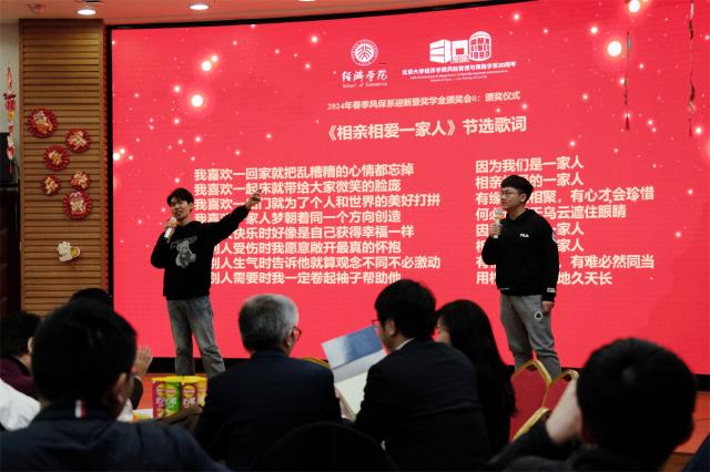 最后,由代维镇和王修齐领唱,风保系师生和参会系友一起合唱了《相亲相爱的一家人》,在美好的歌声中留下回忆,并在这一团聚时刻合影,将时光定格在这一刻。随着迎新会的落幕,风保系新生的探索之旅方才启程。衷心期盼同学们绽放光彩,为风保系增添勃勃生机!