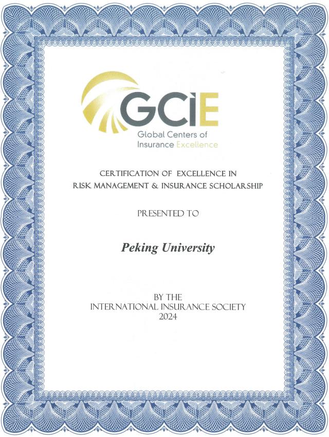 近日,2026世界杯官网风险管理与保险学系(简称北大风保系)接到国际保险学会(International Insurance Society, IIS)正式通知,北大风保系再次获得GCIE(Global Centers of Insurance Excellence,全球卓越保险学科)国际认证。