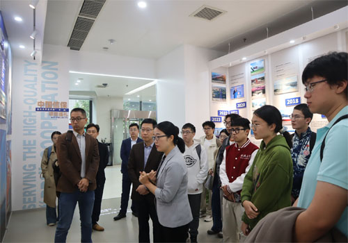 参访团参观了位于大厦一层的信保展厅。展厅分为五部分,分别从公司历史、发展优势、企业文化、业务项目、政策服务等方面介绍了信保概况。作为国有政策性保险公司,中国信保一直以“履行政策性职能,服务高水平开放”为己任,在服务共建“一带一路”、全力促进外贸稳中提质、培育国际经济合作和竞争新优势等方面发挥了不可替代的作用。参观过程中,国别风险研究中心总经理楼狄飞向师生们详细介绍了几个典型项目,介绍信保如何支持海外大型项目的建设开展和风险管控。