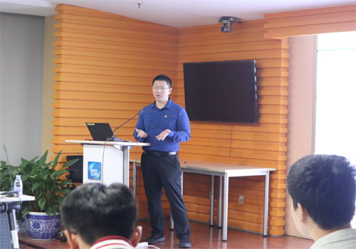 (图2 楼狄飞向师生介绍海外项目)