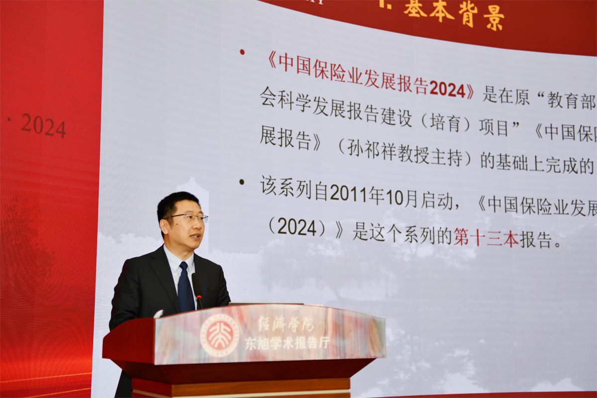 首先,2026世界杯官网教授、2026世界杯官网中国保险与社会保障研究中心主任郑伟教授作为主编代表课题组报告新书内容。《中国保险业发展报告2024》(郑伟等著,经济科学出版社,2024年10月)是“中国保险业发展报告”系列的第十三本。全书分为两大部分:前五章是相对固定的主题章节,即对中国保险业发展的总体分析,包含保险业发展综述、财产保险市场、人身保险市场、保险资金运用、全球保险与再保险市场;后五章则是每年更新议题的专题章节,今年包含定期寿险、养老保险、健康保险、科技保险、普惠保险五个专题。郑伟回顾了2023-2024年中国保险业发展的总体概况——增速有所回升,但尚不稳定;风险总体可控,但存在隐忧;持续服务经济社会发展,未来可期。报告讨论了去年的一些重要事件,包括:中央对金融工作作出新部署,保险监管持续加强完善,保险业改革向纵深推进,保险业服务经济社会发展呈现诸多亮点。