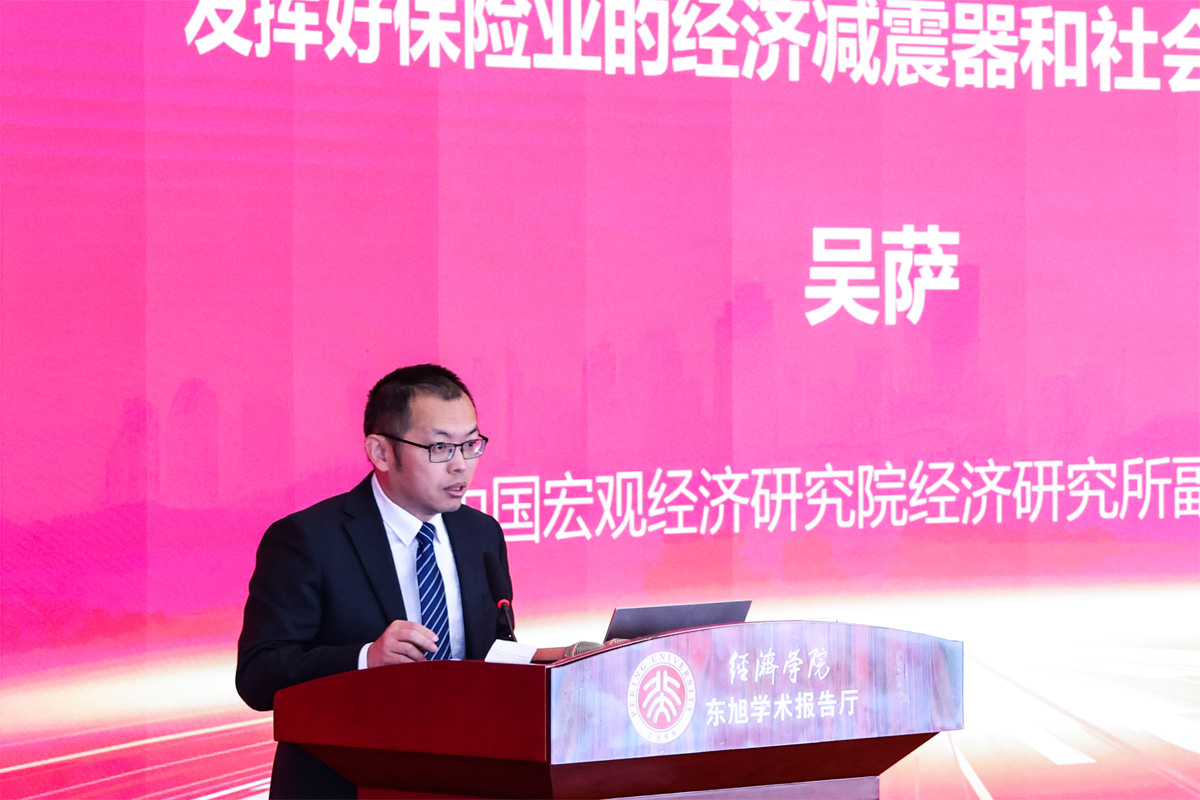 吴萨以“发挥好保险业的经济减震器和社会稳定器作用”为主题发表了演讲。