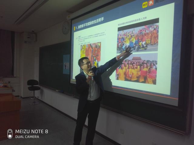 之后,陈荣凯提到的企业社会属性,指出生活服务电商的参与可以促进智慧城市的建设。他认为服务是现代城市的功能,而生活服务电商能够运用大数据技术帮助政府“读懂”城市。为了帮助同学们直观地感受到生活服务电商在运用大数据解读城市上的作用,陈荣凯现场展示了美团的“袋鼠系统”,上面实时显示了北京各个城区每个外送员的位置、接单量、交通状况,以及AI规划处的最佳路径,这样的大数据系统能够保证在高峰期订单的合理分配,也能运用于城市的交通管制与道路规划。在场的同学们无不惊叹于大数据让我们能够足不出户便知晓中国每一个城市每一个角落里正在发生的微小变化。