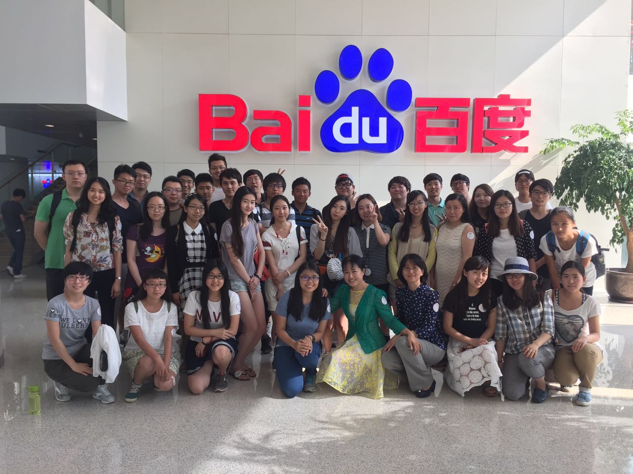 2015年5月25日下午,在戚自科老师、刘群艺老师的带领下,国经贸系12级的学生到达了百度大厦B座的入口,开始了百度参观之旅。国经贸系的师生们首先在一层的百度标志下进行了合影,随后来到四层参观了百度特色企业文化的代表——太空舱休息室。四楼的大厅错落有致地分布着四个白色的圆顶小屋,这是百度提供的员工休息室,包括母婴室、女性专用休息室等。这些白色小屋的地面在一楼的天花板上正好组成了百度标志性的熊掌形状,墙壁上悬挂着各种员工活动照片。