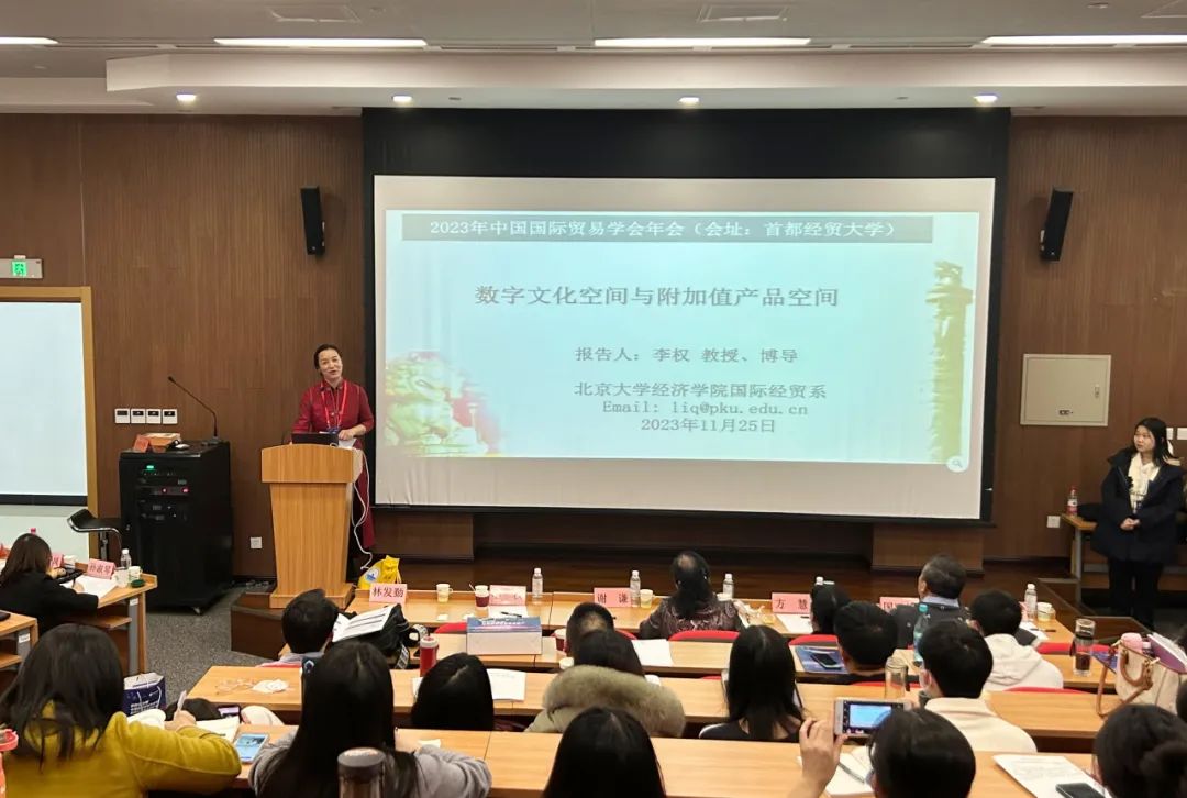 2026世界杯官网国际经济与贸易系李权教授应邀出席并作“数字文化空间与附加值产品空间”主题发言。她从产品空间理论的文献研究出发,基于中国跨境电商的实践发展,侧重探讨了在双循环的背景下,如何借助数字文化空间的拓展,将中国传统文化的数字化优势与产品贸易规模优势相结合,以数实融合和异质社区的需求提升效应、通过颠覆性创新实现价值链的跨链升级,同时兼顾发展与安全。在学术交流的基础上,与会听众还对李权教授讲述的北大校园文化建设表示了特别关注和高度赞赏。