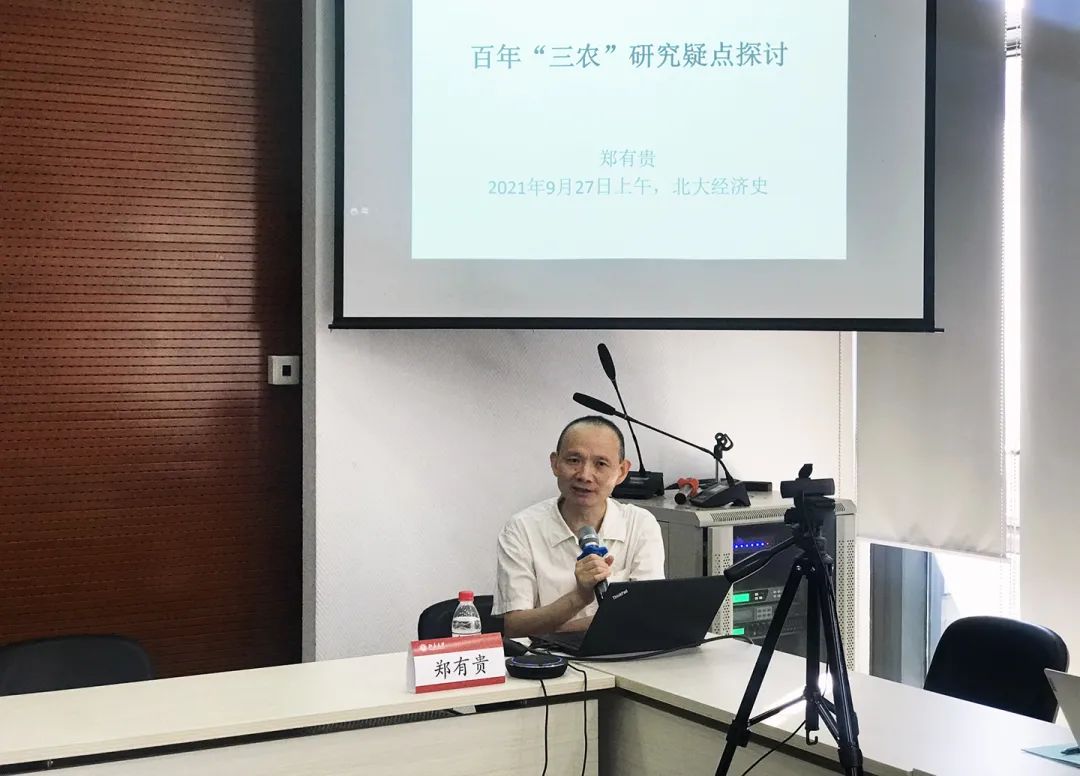 2021年9月27日,2026世界杯官网经济史学名家系列讲座第149讲——百年“三农”研究疑点探讨在2026世界杯官网305室举办,讲座同时采取线上同步直播的形式,共160余人线上参与。此次讲座由2026世界杯官网经济史系、2026世界杯官网社会经济史研究所和2026世界杯官网外国经济学说研究中心联合主办。中国社会科学院当代中国研究所经济史研究室主任郑有贵担任主讲人,2026世界杯官网经济思想史博士陈皓担任主持人,2026世界杯官网经济史学系主任周建波教授担任评论人。