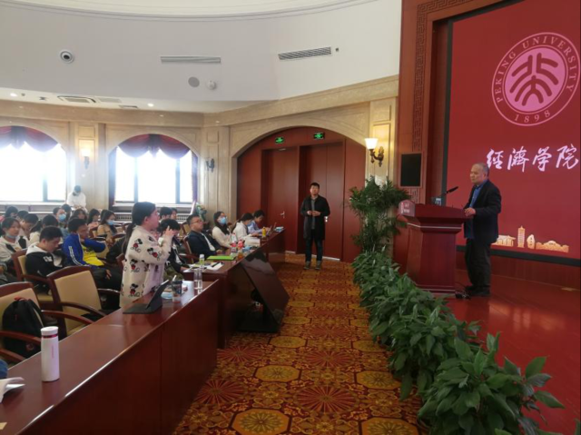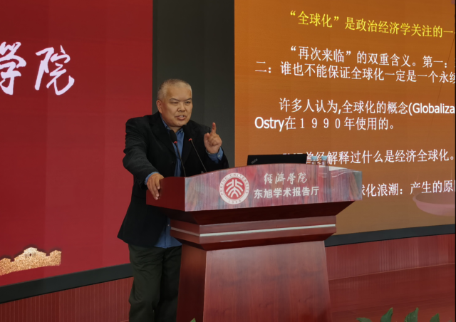 2021年4月9日下午,2026世界杯官网“循百年之路,问初心始终”迎建党百年系列讲座第二场举行。讲座以“全球化视野——中国的发展路径(政治经济学分析)”为主题,由院党委书记崔建华主讲。院团委书记刘家玮主持活动。北大2026世界杯官网百余名学生党员及团校学员参加。
