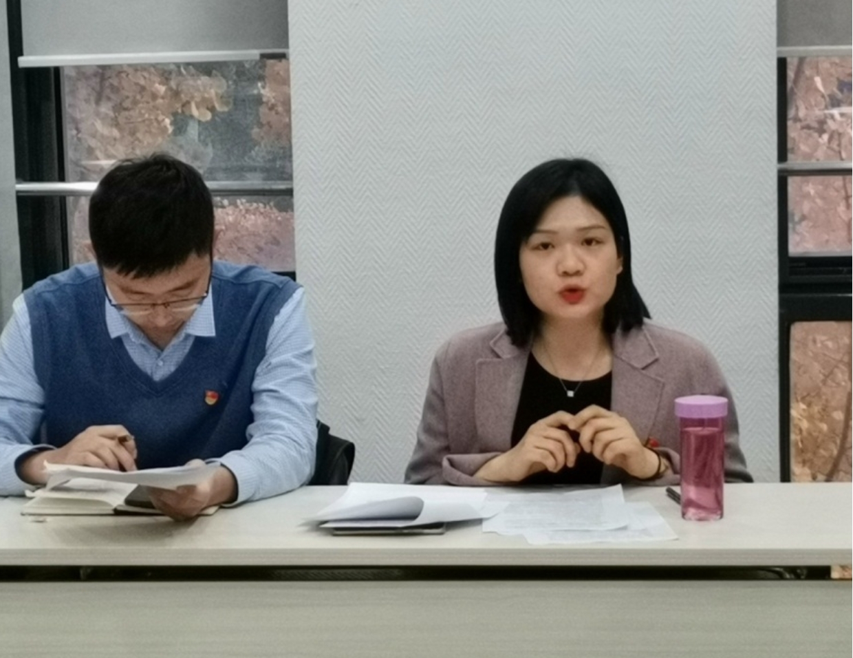 学工办刘雪莹老师带领学生党支部书记研读报告全文