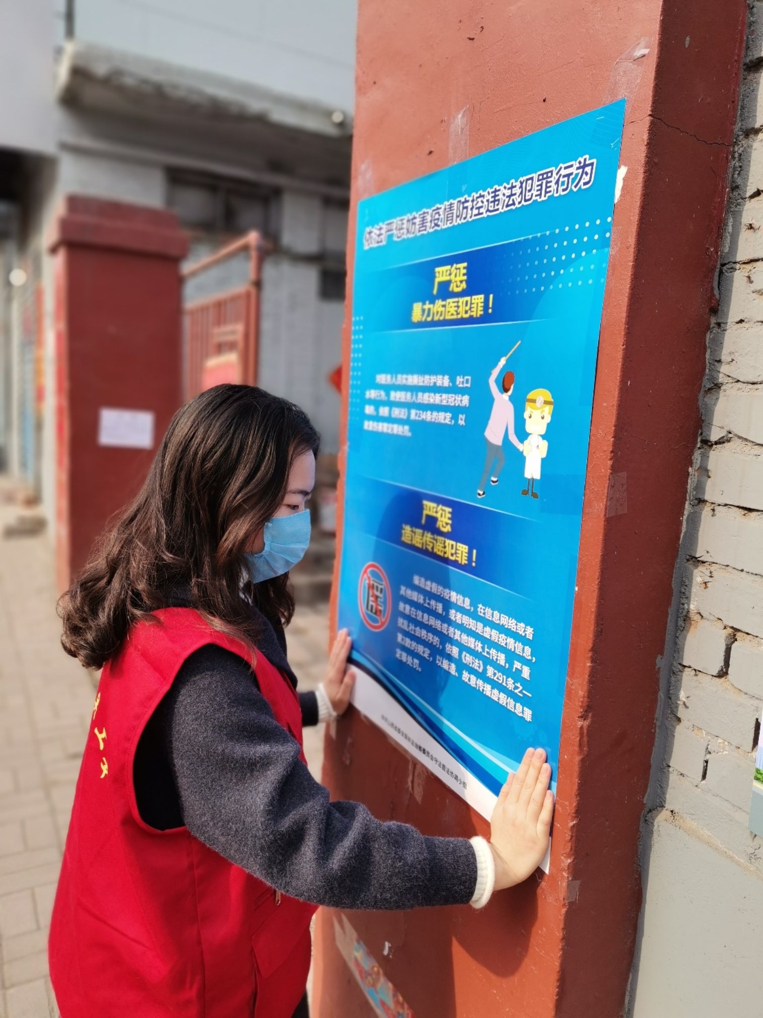 2018级本科生党支部预备党员左承惠,积极报名社区志愿工作,穿上红马甲和社区工作人员一同戴好口罩、走上街头,她和其他志愿者一同在社区里张贴防疫宣传画、排查小区居民的人员流动情况、在街道上劝阻未戴口罩的行人。北方的冬天寒风凛冽,但是每当她想到还有许许多多的志愿者和工作人员坚守在一线,就再次充满干劲。