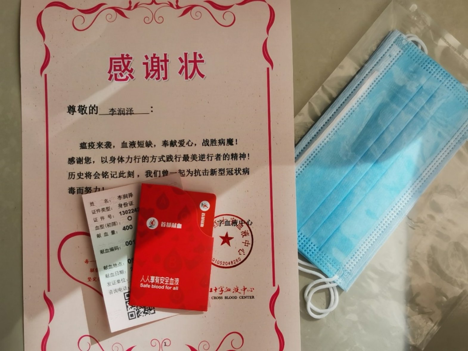 同时,2018级本科生党支部预备党员李润泽因校园封闭管理,无法参加学校集体献血活动,在与北京血液中心联系后,他选择西单献血车作为献血地点。2月22日,李润泽献血400cc,24日该血样通过检疫,投入使用。他认为,身为预备党员应该做出表率,无法亲临现场冲锋陷阵,就为疫情提供远程支援。他相信自己的行为会号召更多同学,通过各种形式加入战“疫”行列。