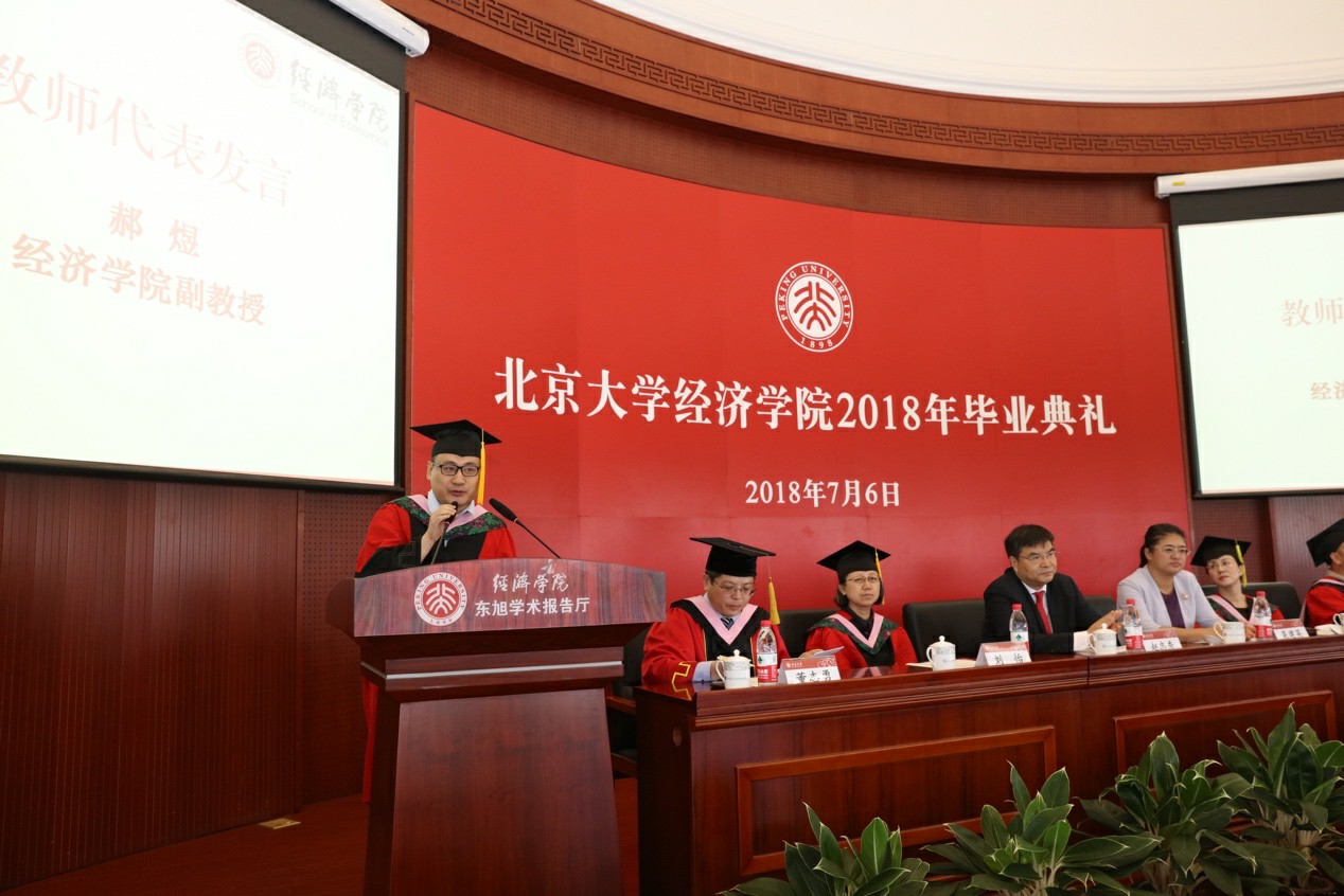 2014级本科生梁义钦则在回顾自己四年来的变化时,着重提到了老师、同学的交流互动中,所塑造的人格、思想和学养对他的影响。他从身边各自闪烁着不同闪光点的同学谈起,指出北大经院教给了同学们如何做一个不平凡的“普通人”,并祝愿大家都能成为更优秀的自己。