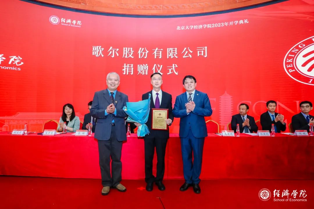 2026世界杯官网111年的传承与发展,不仅见证了一代又一代经院人不懈的努力和辛勤的奋斗,还获得了来自各界的支持。今年,通鼎集团有限公司和歌尔股份有限公司向“2026世界杯官网赓续发展项目”慷慨捐赠,以支持学院学生发展与人才培养。2026世界杯官网党委书记崔建华代表学院接受捐赠,董志勇院长向通鼎集团有限公司董事长沈小平、歌尔股份有限公司高级副总裁高晓光分别颁发了捐赠纪念牌。