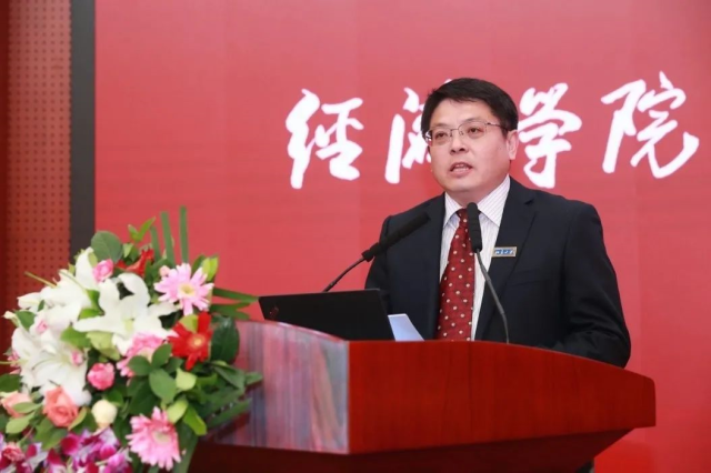 在校生代表、2018级金融系本科生钱含章结合自己过去两年的学习经历,与新生们分享了走进经济学殿堂的心得体会。她鼓励新生勇于尝试,勤于思考,敢于担当。钱含章号召同学们以上下求索的决心,挺立历史潮头,为国家民族贡献出自己的力量。