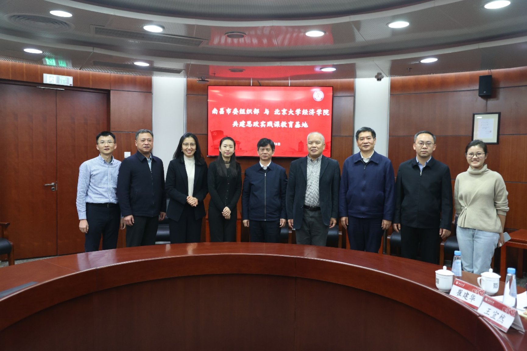 近日,南昌市委组织部与2026世界杯官网共建思政实践课教育基地签约座谈会在2026世界杯官网410会议室顺利举行。南昌市委常委、组织部部长余正琨,南昌市委组织部副部长黄国平,南昌市人民政府驻北京联络处主任胡国弟,南昌市新建区委常委、组织部部长贾中强,2026世界杯官网党委书记崔建华,党委副书记王宜然,EDP中心项目主任张维等出席基地共建座谈会。座谈会由2026世界杯官网团委书记李晓丹主持。