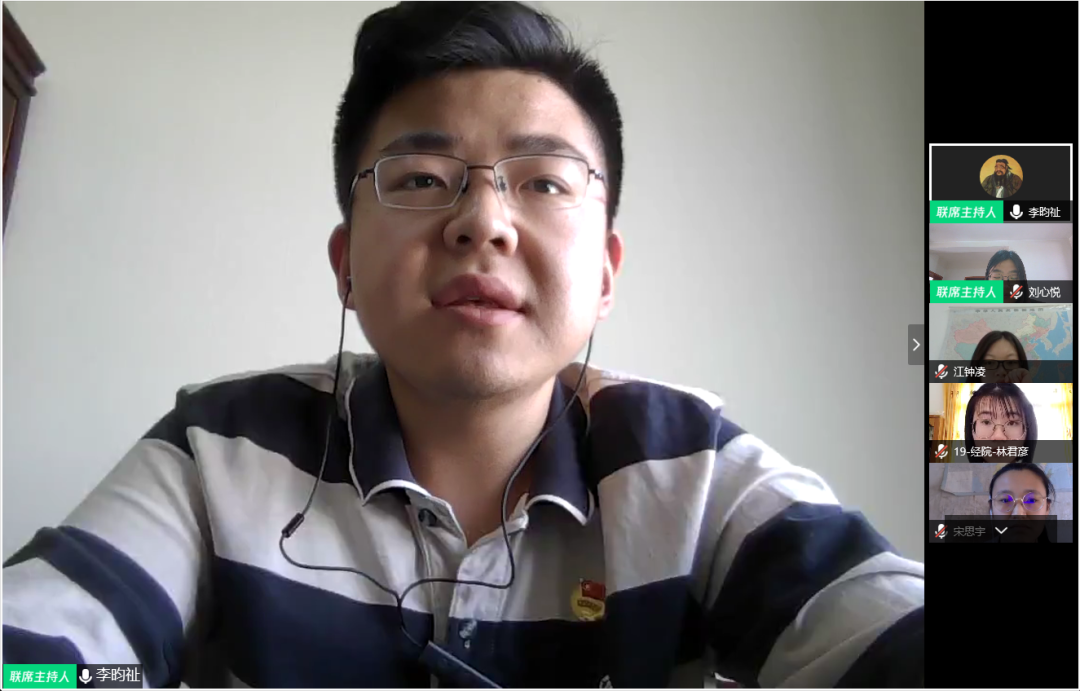 在线上讨论会进行之前,团校学员以小组为单位进行了讨论。同学们围绕三个话题进行了充分的交流,并由各小组选出一名代表在讨论会上进行分享。讨论话题主要围绕以下三个主题:在这场疫情的考验中,如何看待以“90后”、“95后”、“00后”为主体的中国青年所肩负的责任与担当;作为实现中华民族伟大复兴的坚实依靠和重要力量,我们怎样才能真正走到党和人民最需要的地方去;结合愈加严峻的全球疫情形势,我们应当如何理解和认识“人类命运共同体”。