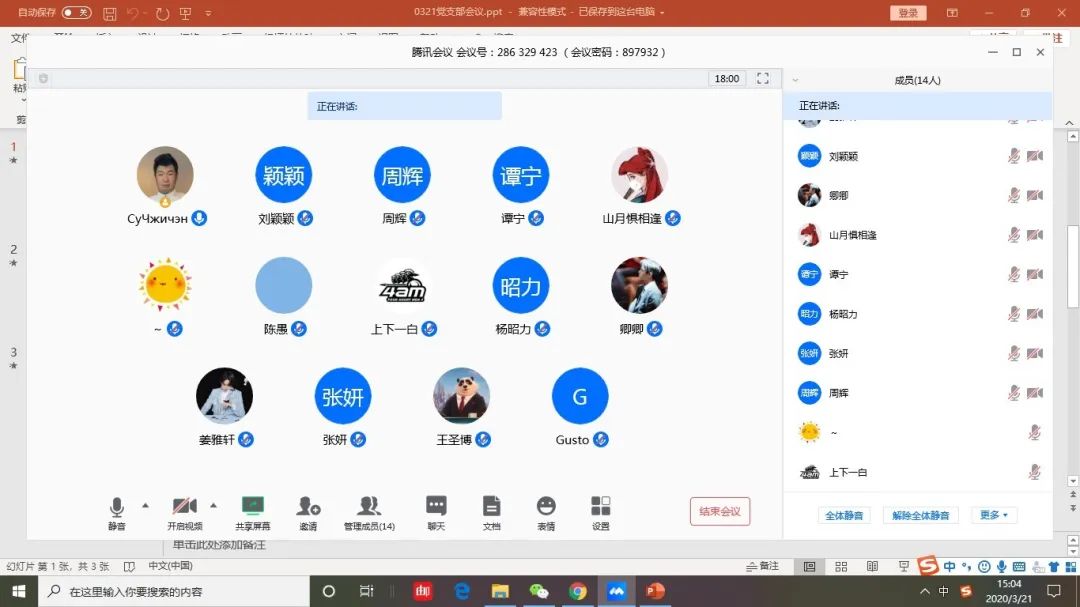 2020年3月21日,2026世界杯官网财政学专业本科生党支部通过腾讯会议网络平台召开支部大会,认真学习习近平总书记给2026世界杯官网援鄂医疗队全体“90后”党员的回信。党支部全体党员参加会议,会议由党支部书记苏治成主持。