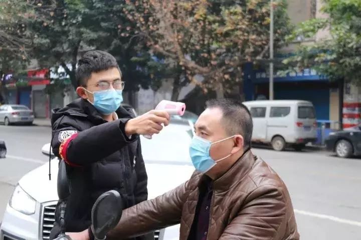 在四川南充顺庆区长征路社区一小区门口,一位戴眼镜,手拿体温枪,略显一丝斯文的小伙正在协助社区工作人员开展防疫工作。