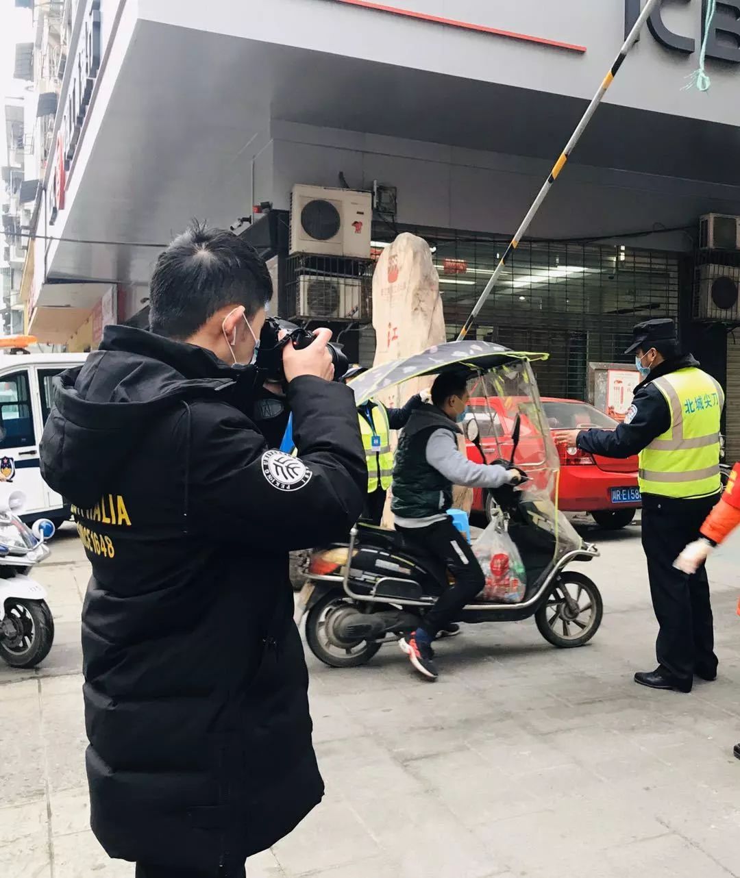 除了红袖套和体温枪,佘金燚还有一件“行头”就是胸前的相机。在北城街道疫情防控的每个现场,佘金燚还充当“宣传员”,用相机记录每一个个暖心的工作瞬间,并为北城街道微信公众号编发微信,讲好街道疫情防控的最新消息、最暖故事。