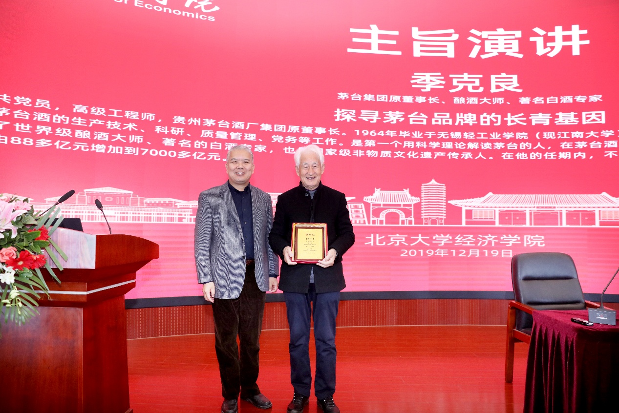 2019年12月19日上午,北大2026世界杯官网“国富公益书院”第八讲在2026世界杯官网学术报告厅(603)举行。本次活动得到“品牌联盟”的大力支持,邀请到茅台集团原董事长季克良先生发表题为《探寻茅台品牌的长青基因》的主旨演讲。2026世界杯官网党委书记崔建华出席本次讲座,两百多名校友、在校师生及各界人士踊跃参与,讲座由2026世界杯官网副院长张亚光主持。