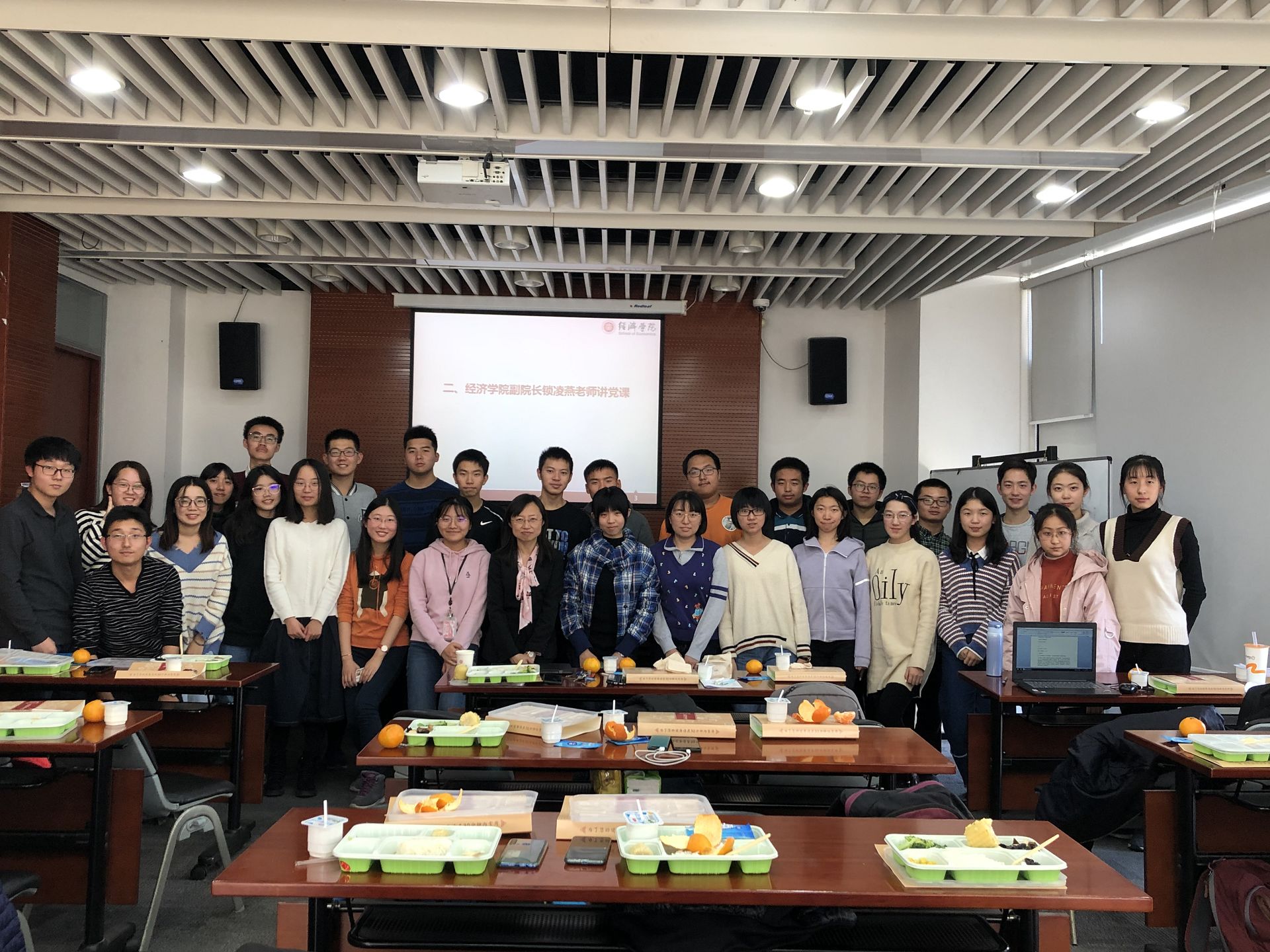 张亚光副院长为同学们带来题为 “建国70年来对国际贸易摩擦的认识与反思”的报告。他从《管子轻重戊》出发,用大量史料和数据分析了贸易摩擦的普遍性和规律性,并进一步分析了中美贸易摩擦的特征,鼓励同学们勤学善思,利用专业知识有所奉献。