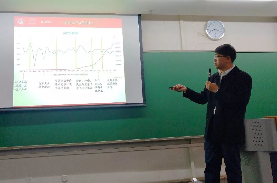 首先,唐琦老师从新世纪以来中国共产党历次全国代表大会工作报告的内容出发,结合我国工业化的历史进程,梳理了我国对于经济发展问题认识的演进深化。党的十九大报告明确指出要“贯彻新发展理念,建设现代化经济体系”,要求从全方位、多角度建设一个由社会经济活动各个环节、各个层面、各个领域相互关系和内在联系构成的有机整体。进一步地,唐琦老师列举了我国汽车产业、医疗产业、芯片制造、钢铁企业等诸多方面的具体案例,深入浅出地阐述了未来我国经济发展所面临的挑战,明确了当前建设中国现代化经济体系的必要性。