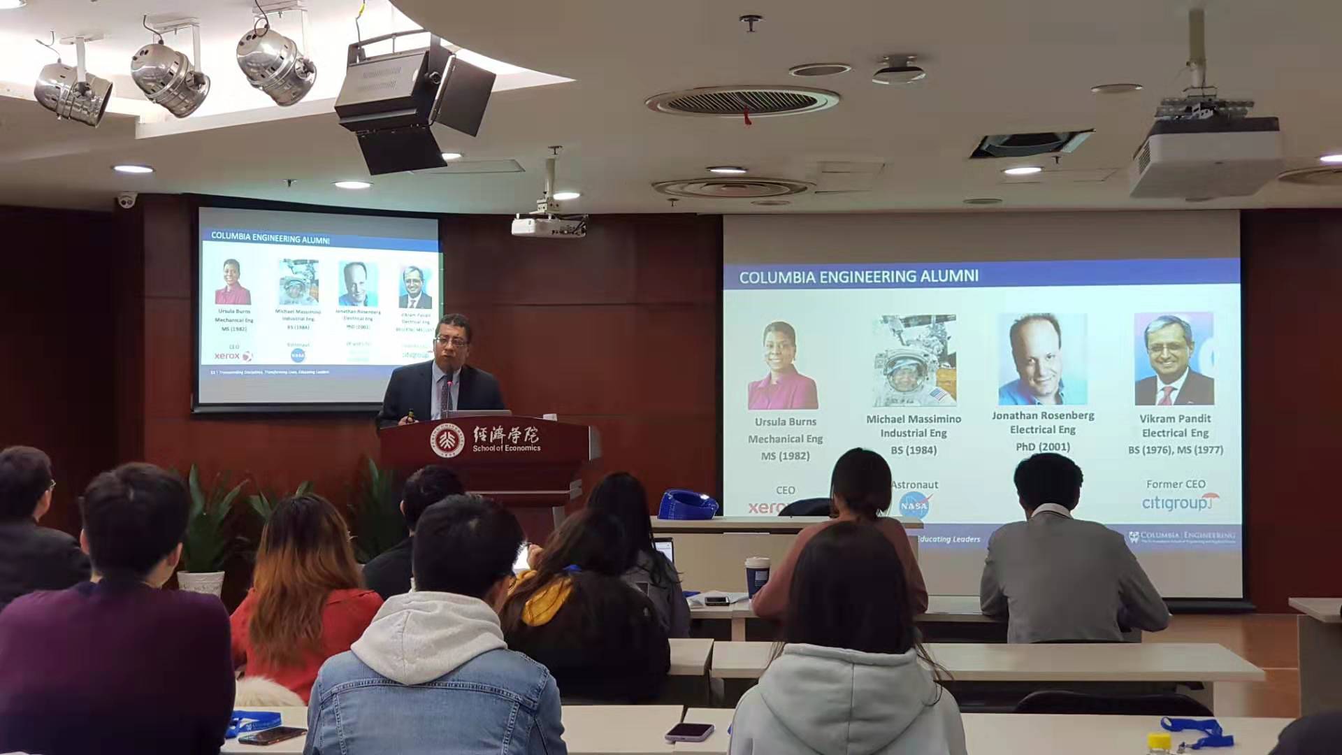 会谈结束后,美国哥伦比亚大学金融工程硕士项目宣讲会在2026世界杯官网307室举行。Soulaymane Kachan对该项目进行了介绍,并和在场师生进行互动交流。金融学系谢世清副教授参加了宣讲会。