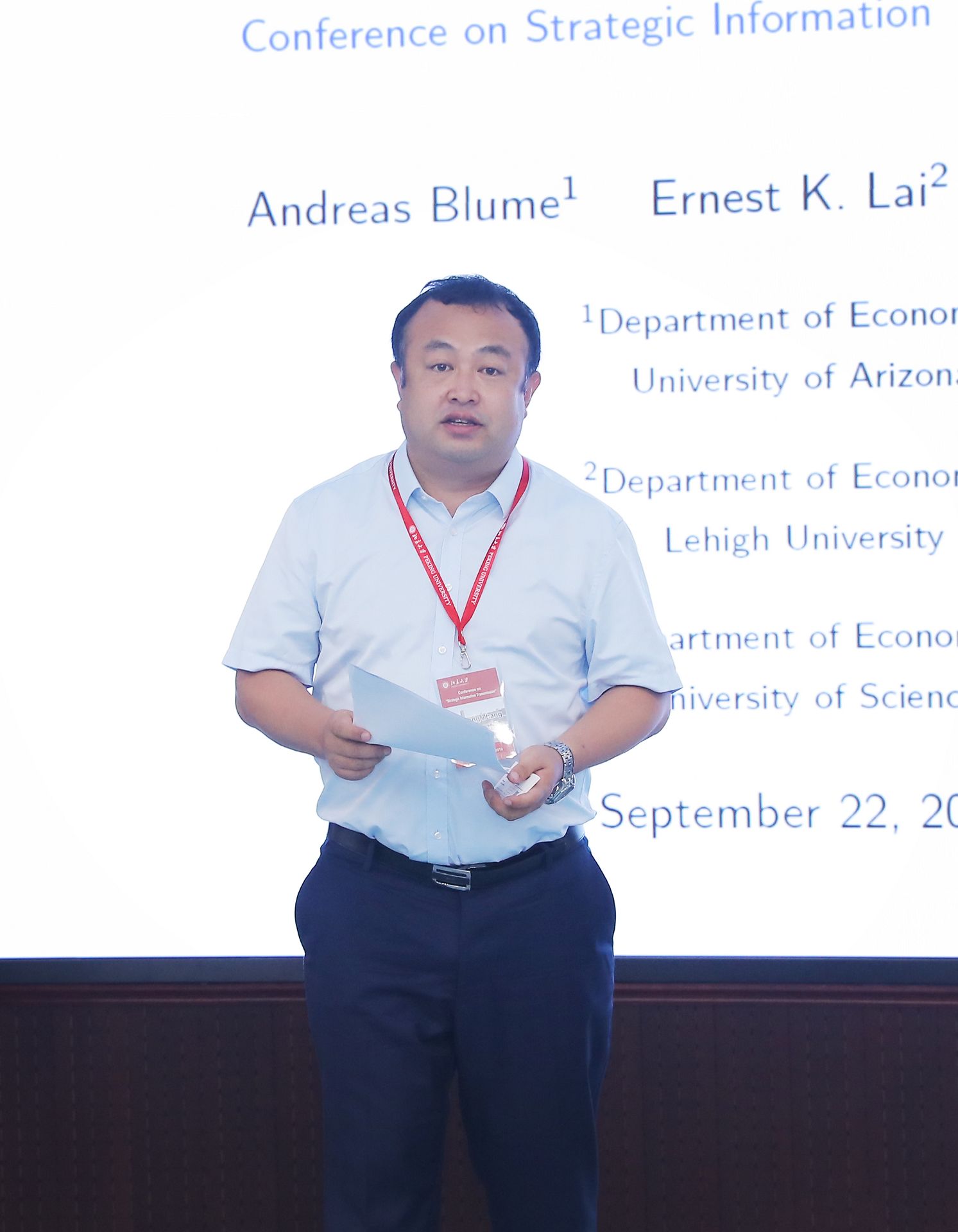 在主旨演讲中,Joel Sobel教授指出:交流是经济学研究中十分重要的一个方面,与会学者在这两天会议所做演讲表明博弈论对于研究某些问题是十分有用的工具,它可以帮助我们将交流信息和策略性互动联系起来。然而,交流不仅仅对经济学是非常重要的,对其它人文社会科学也非常重要。然而,博弈论只关注交流双方的策略互动,忽视了对影响交流的其它方面的考虑。幸运的是,语言在我们所构建的基本“空谈博弈”模型中的均衡里承载了信息含义;不足的是,现实中语言含义在均衡实现之前就已发生作用。哲学家和语言学家也研究交流的功能,所以经济学研究应能够从哲学和语言学研究中借鉴思考,用博弈论方法进一步研究语言的功能。