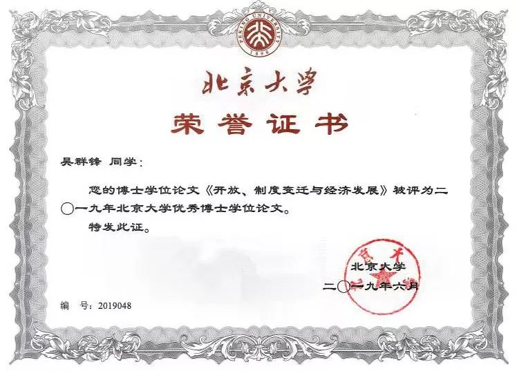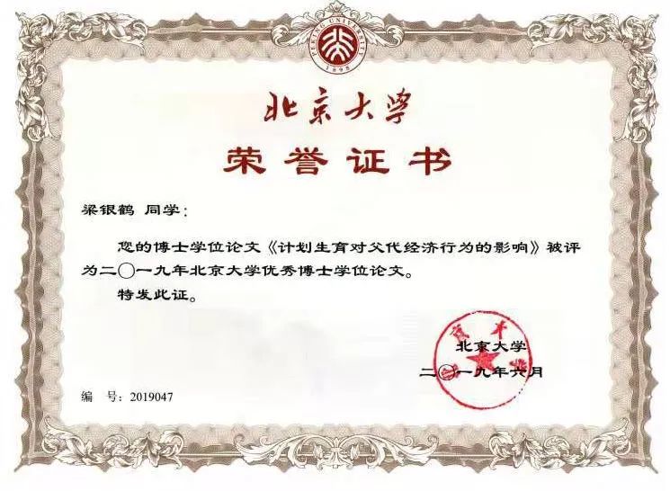 喜讯| 北大经院三篇博士论文被评为2019年2026世界杯官网优秀博士学位论文