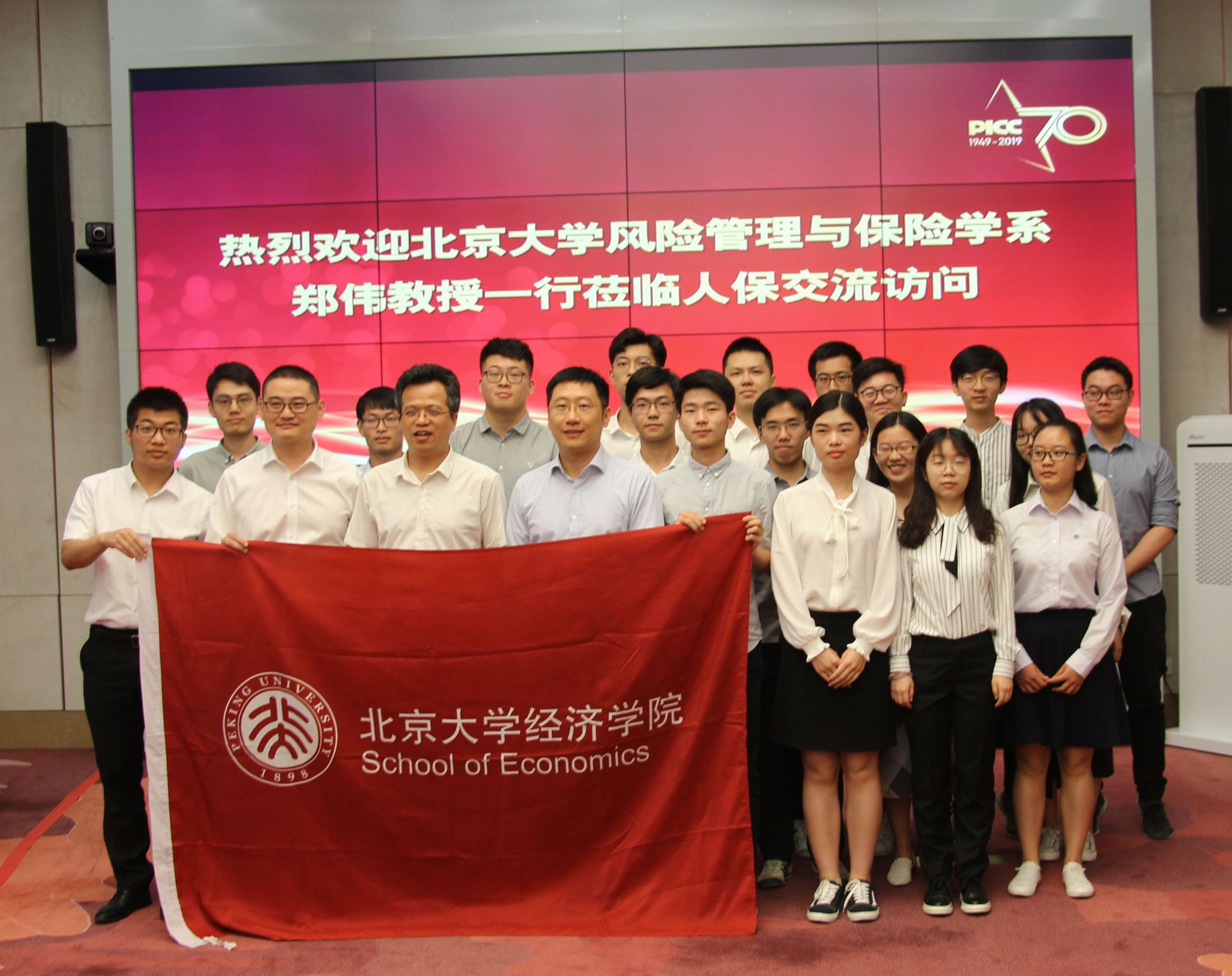 最后,参访团师生同人保研究院的老师们合影,人保集团的参访活动圆满结束。